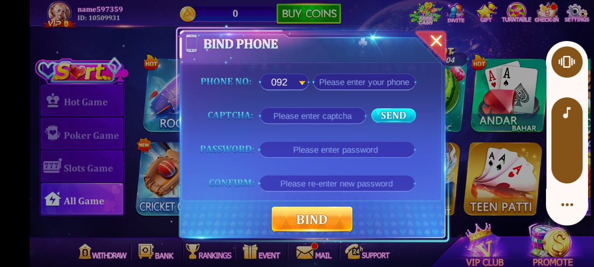 To play your favorite games and earn money in KK Club game you must have a account on the app. The process of creating account is very easy and simple. You can create an account in this application from any corner of Pakistan using your mobile phone number in a few seconds. After which you can now start by deposit some cash or through bonuses. Most players are having trouble making an account on KK Club Game Apk. Every time they create their account, they are facing the problem of having a “too many account”. Remember, you can only create one account with one sim number.